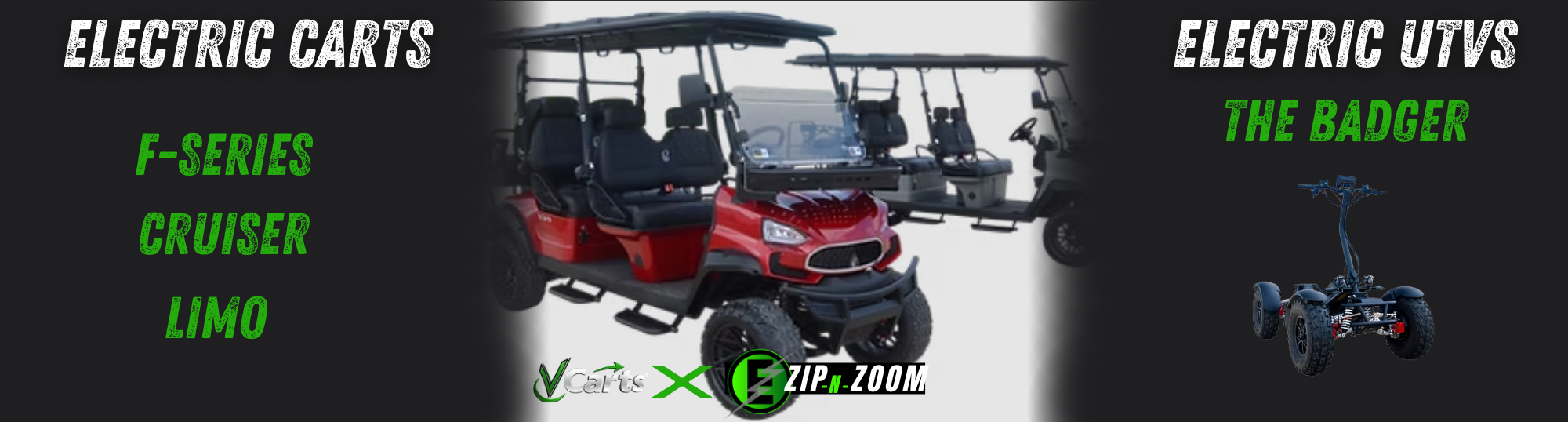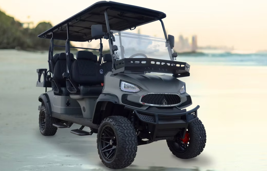 VCarts delivers two powerful lines under one roof: fully loaded, lithium-powered street-legal carts and the Badger—an all-wheel-drive, stand-up electric ATV built for ranch, trail, and job-site utility. VCarts assembles carts in Brookshire, Texas, backs lithium packs with a 6-year battery warranty, and equips F-Series/Cruiser models with modern safety tech (LED lighting, turn signals, backup camera, 11" touchscreen, 3-point belts) for compliant LSV use where permitted.