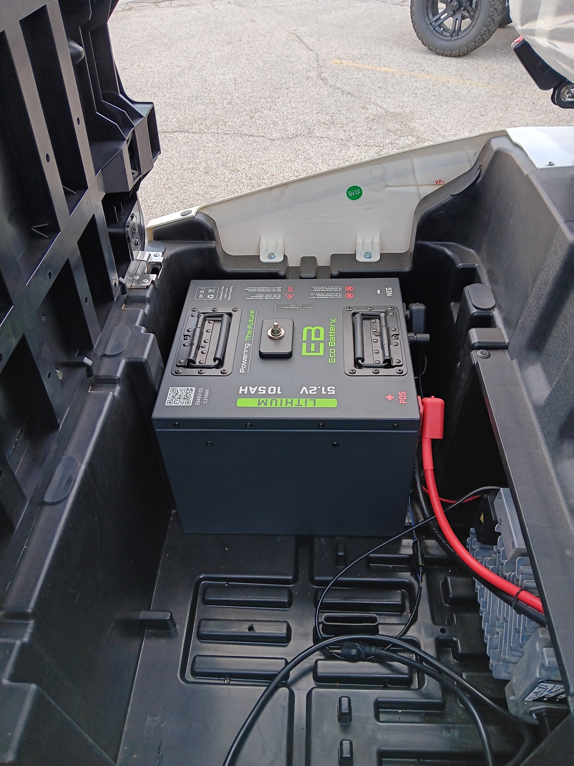 - Power and Performance: Powered by a 5kW (6.7HP) AC motor, it reaches speeds up to 25 mph. With a high load capacity of 1,200 lbs and the ability to travel 30-40 miles on a single charge, it’s perfect for long days out. An optional lithium battery upgrade extends range and efficiency.