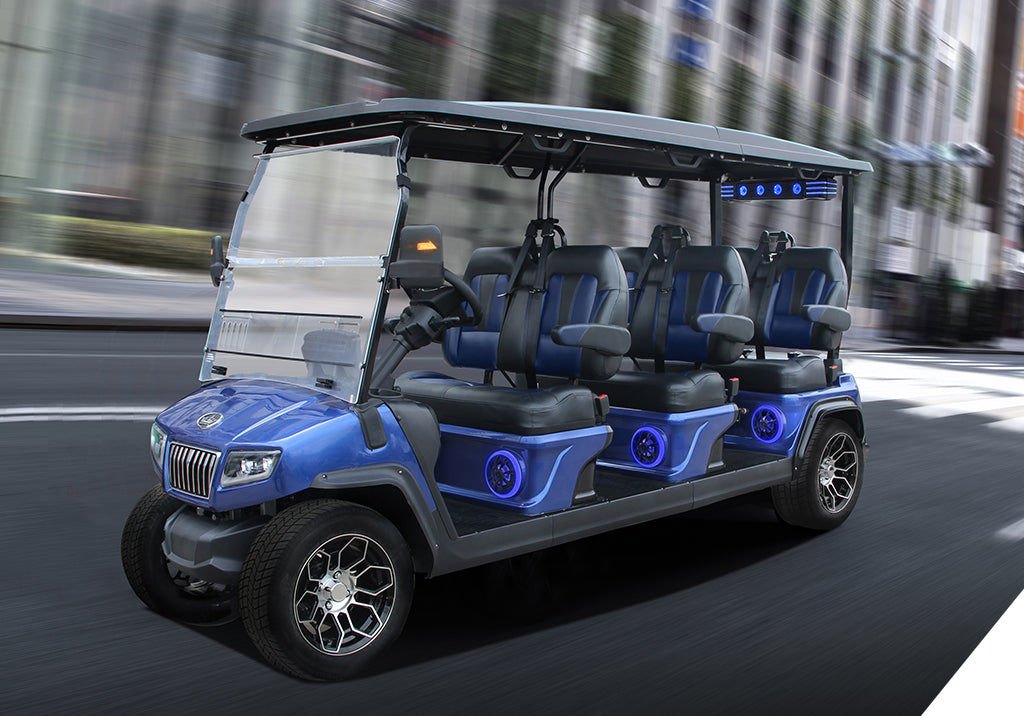- Comfort and Luxury: Features premium seats with armrests, a multifunctional dash with a 9-inch touchscreen that includes a back-up camera, stereo, and battery usage indicator, alongside premium sound bars, storage trunk, USB charging ports, and LED deluxe light package.