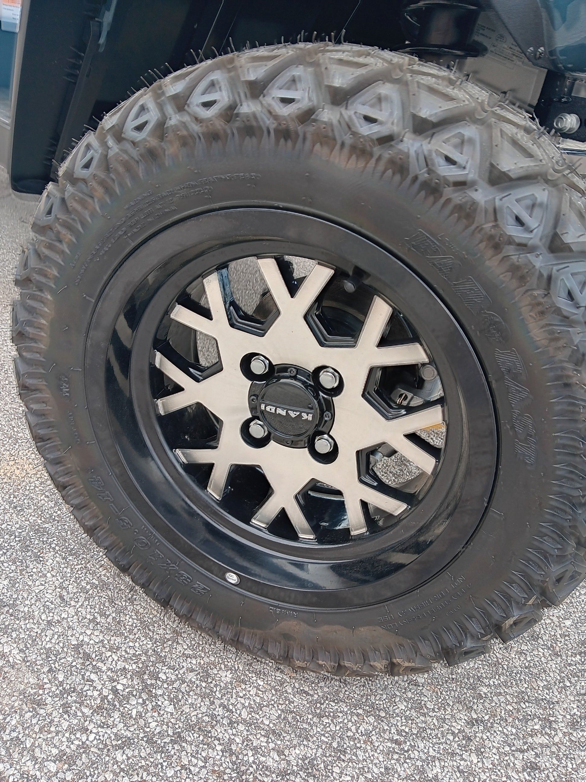 Factory-lifted suspension paired with 23” all-terrain tires and 14” alloy wheels gives you confidence on pavement, gravel, and light trails.