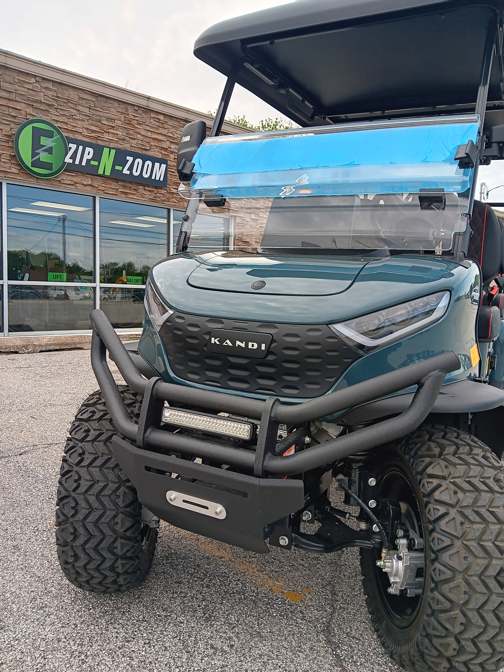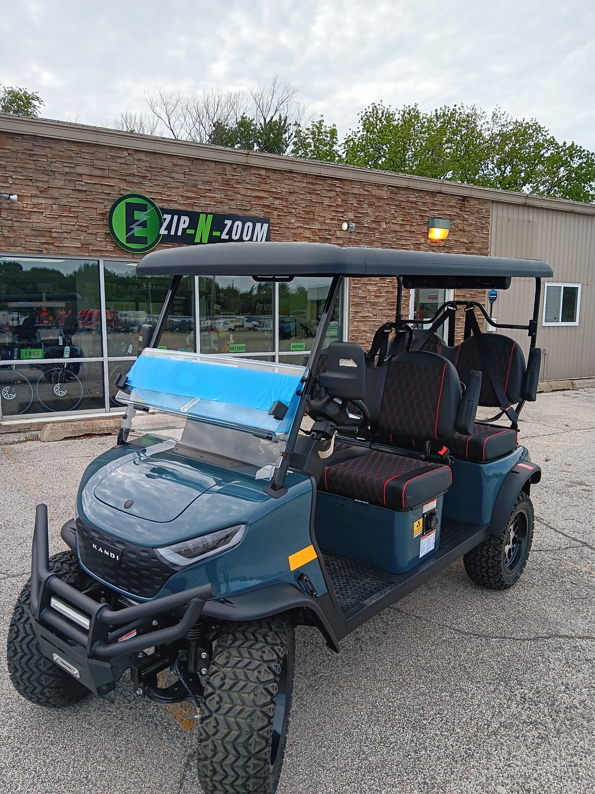 Now available in Calvary Blue at EzipNzoom in Des Moines, the Kandi Kruiser 4PF delivers everything you want in a modern electric golf cart—eye-catching style, rugged capability, and street-ready features. Whether you’re navigating your neighborhood, heading to the course, or cruising around the lake, this lifted 4-seater makes every ride an experience.