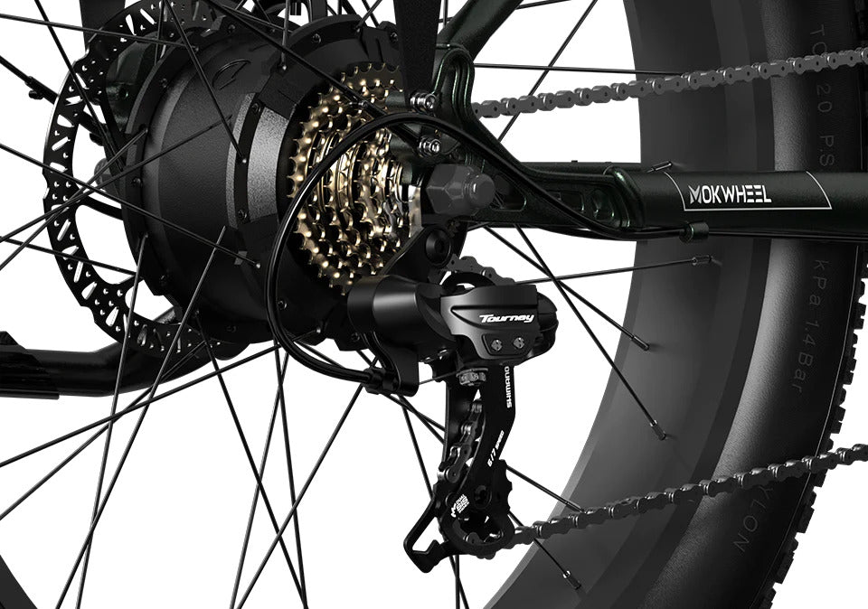 Mokwheel's 8-speed derailleur is engineered to provide effortless and seamless gear transitions. Say goodbye to chain drops and frustrating shifts – this derailleur ensures you're always in the right gear.