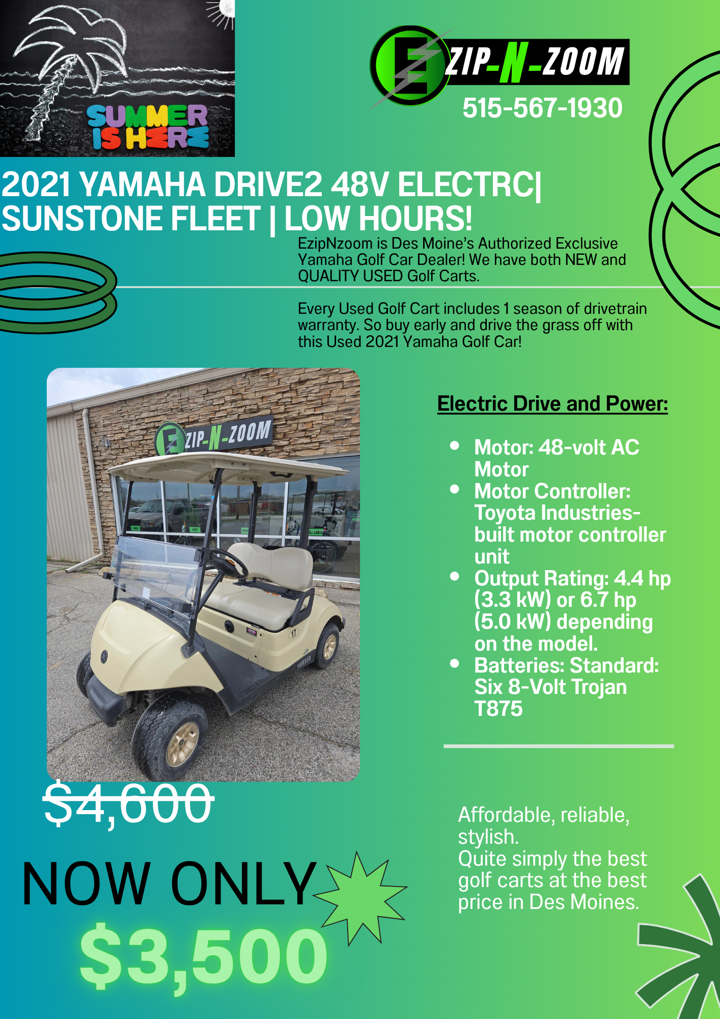Visit EzipNzoom, a Family Owned Full Service Golf, Ebike, and Scooter Store, located at 5454 NE 14th Street, Des Moines, Iowa, just North of I-80, to test drive this 2021 Yamaha Drive2 today. Have questions? Call us at 515-567-1930 or email dsmezip@gmail.com. Experience reliable golf cars with EzipNzoom, your local Des Moines golf car experts!